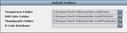 The first thing the options allow to be changed are the Default folders. Make sure the Temporary Folder is on a HDD with enough space for the processes Video Vault will be working on. You can change any of these folders to whatever you want, but the default folders inside the installed directory should be just fine, unless you'd rather store everything on an external HDD.